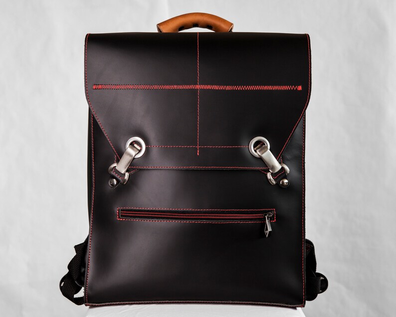 Aktentasche Rucksack Leder Laptop Tasche Schwarze Und Rote Etsy