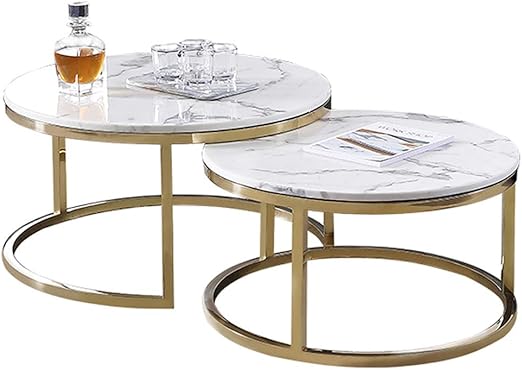 Amazon De Runder Couchtisch Aus Weissem Marmor Satztische 2er Set Fur Den Beistelltisch Im