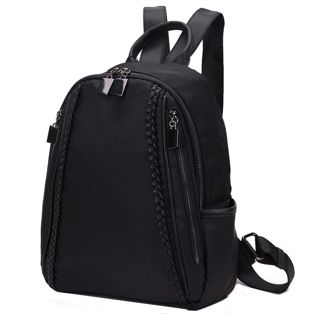 Zaino Moda Zaino In Pelle Femminile Con Doppia Cerniera Borsa Per Laptop Convertibile Femmina Nera Borsa
