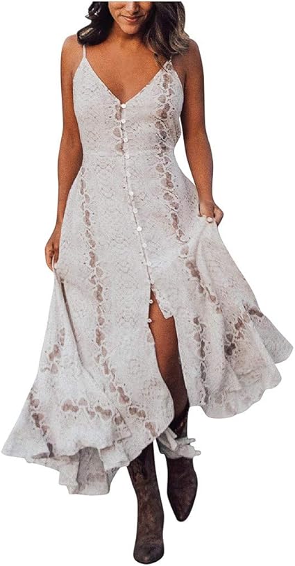 Janly Kleid Frauen Boho Sexy Sling Maxi Kleider Damen Schlangendruck Deap V Ausschnitt Knopfleiste Sommerkleid Fur Hochzeit Gaste Frauen Unregelmassige Saum Bandage Strand Flowy Kleider Valentinstag Jetzt Kaufen Damen Hyf 98 Weiss Xl Amazon De