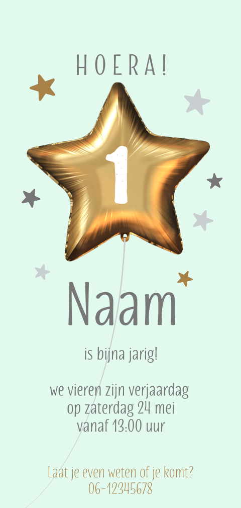 Uitnodiging verjaardag kind 1 jaar gouden ballon
