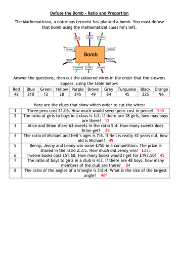 Defuse The Bomb Ratio And Proportion Teaching Resources