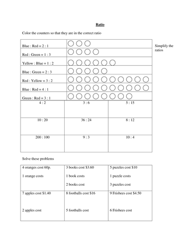 Ratio Worksheet Teaching Resources