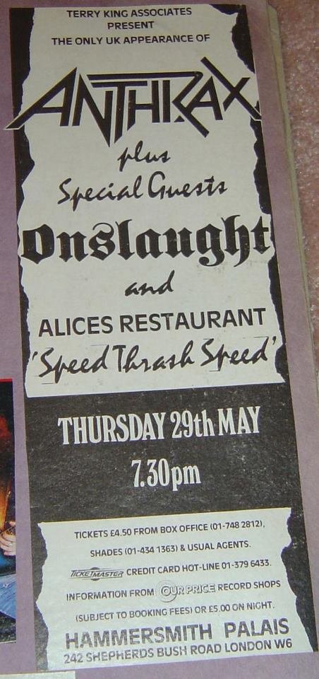 Anthrax At Hammersmith Palais London On 29 May 1986 Last Fm