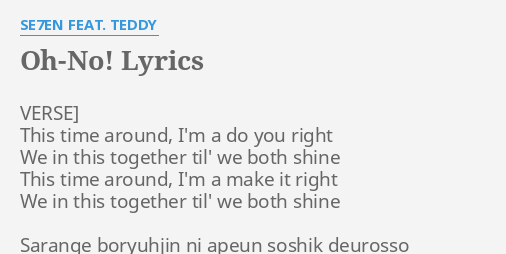 Oh No Lyrics By Se7en Feat Teddy Verse This Time Around